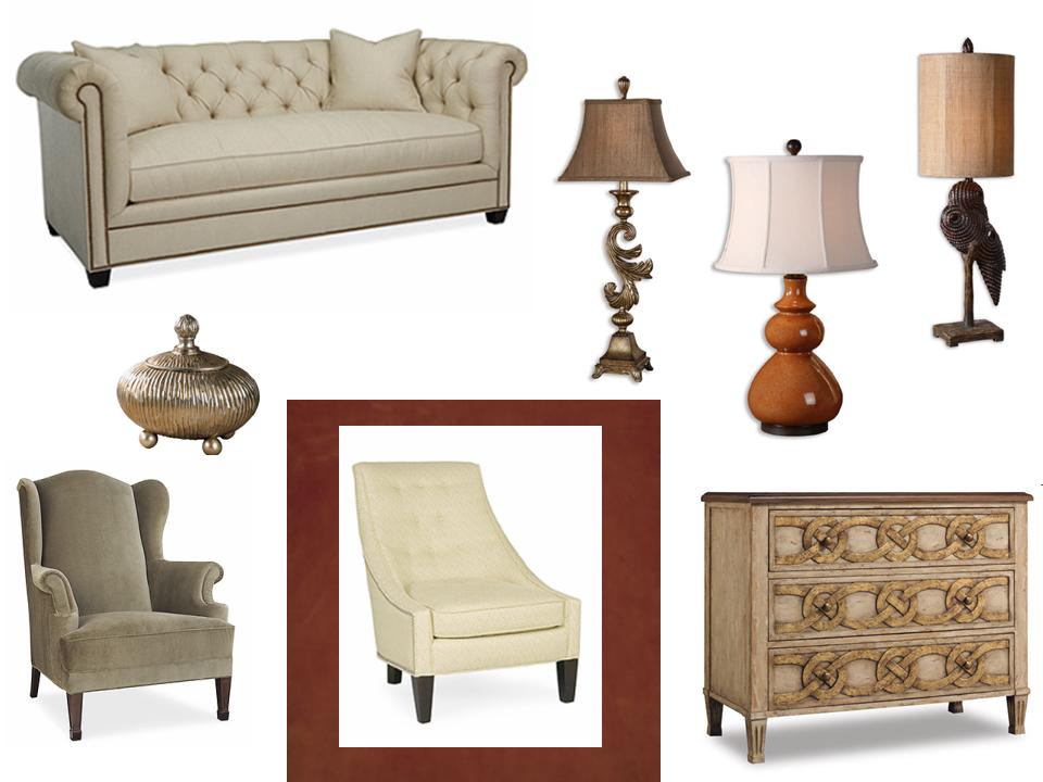 Her new home has the bones to back this style up with lots of river rock and natural color schemes throughout. It would be easy to load the place with over sized chairs, weathered leather, thick wool blankets and oil landscapes... but she wants to take a feminine approach to the look with lots of pretty details.